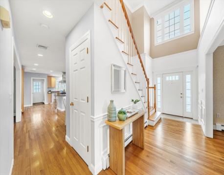 This perfect Needham home is set on a desirable corner lot. A beautiful and modern Colonial offering 4 bedrooms and 2.5 baths. Ideally located just a short distance to Mitchell Elementary and Needham High School, and conveniently close to the train station. Designed for both everyday living and entertaining, the open floor plan features a gourmet eat-in kitchen that flows seamlessly into a spacious family room with a fireplace. Generous dining room with direct access to a deck and fenced backyard. The first floor also includes a charming fireplaced living room, a private corner home office, and a convenient powder room. Upstairs, the expansive primary suite offers a spa-like en-suite bath and two walk-in closets, complemented by three additional well-sized bedrooms, a full bath, and a separate laundry room. The finished basement provides valuable additional living space, including a fireplaced playroom, a workshop/utility area, and access to a 2+ car garage