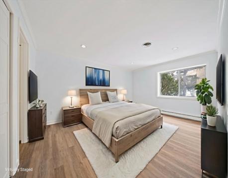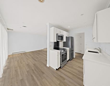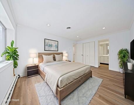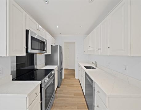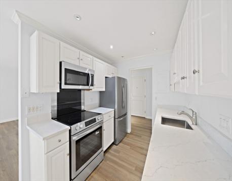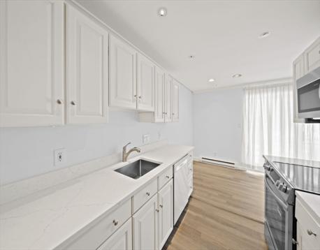 Newly renovated 2-bedroom, 2-bath condo at the highly desirable Charles Court East in Needham! This bright and spacious home features an open floor plan with a modern kitchen offering quartz countertops, stainless steel appliances, and brushed nickel finishes. The primary suite includes a large double closet and updated ensuite bath with tiled shower. A generous second bedroom sits next to an additional full bath with tub and shower. Private balcony, new flooring, recessed lighting, freshly painted interiors, and storage is plentiful with multiple closets plus additional basement storage. The professionally managed building features updated lobby and common areas. One deeded parking space included, with additional parking available for a fee. HOA covers heat, hot water, water/sewer, and electricity. Convenient highway access, close proximity to commuter rail, shopping and walking trails. Showing by appointment begin on Sun. Mar 8th