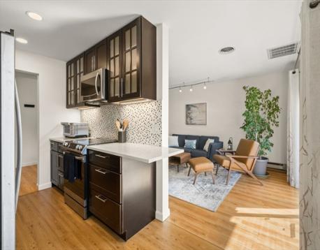 Renovated 1 bed condo offers unbeatable location and easy living at Charles Court East in Needham. Highlights include updated 2020 kitchen with quartz counters, tile backsplash & Samsung appliances. There’s an updated bathroom, bright and open layout, new flooring, private sunny balcony + large bedroom with oversized closet and room for a desk. Move-in ready unit was freshly painted, and includes a private storage closet in basement, laundry in building, and option to add in-unit for new owner. Mins to I-95, Needham center, commuter rail (Hersey) station. 1 parking space close to entry included plus abundant guest spots. Professionally managed condo association. Condo fee includes many services + all utilities, electric, A/C. You only pay for your internet & cable. Excellent opportunity to be in prime Needham location mins to Needham center, Dedham Sq, nature trails. Modern feel & effortless, convenient living! Only shown by appointment.