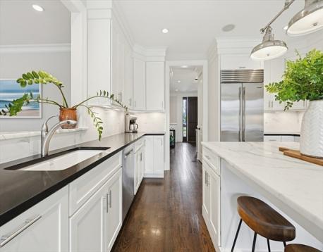 Life unfolds with ease in this exceptional Needham Heights home, where refined interiors and a private outdoor retreat create a true luxury lifestyle. Inside-5 bedrooms and 5.5 baths are complemented by detailed millwork and custom finishes that bring elegance and warmth to every space. The gourmet kitchen, appointed with commercial-grade appliances, opens seamlessly to inviting living areas designed for both refined yet comfortable everyday living and effortless entertaining. Outdoors, a rare and remarkable setting awaits — a heated gunite pool, expansive stone patio, and outdoor granite kitchen come together to create a private oasis rarely found. Whether hosting gatherings or enjoying quiet evenings, the experience is unmatched. Finshed 3rd floor. The finished lower level continues the lifestyle with walk-in wine room, waterfall-edge bar, custom cabinetry, and open family room seating. The desirable location close to shops, train, and schools - complete this exceptional offering.