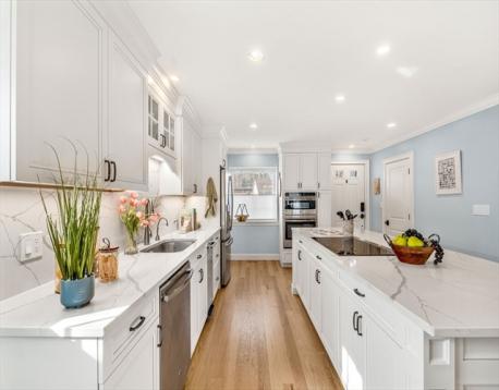 This rare 3 bed, 3.5 bath townhome offers a unique, highly functional layout and was fully rebuilt to the studs in 2016 with all new electrical, plumbing, windows, insulation, HVAC, and high-end finishes. Every bathroom features heated floors for year-round comfort. Enjoy natural gas heat, gas fireplace, central air, and an on-demand tankless water heater. The designer kitchen includes custom cabinetry, quartzite countertops, induction cooking, and updated appliances. Smart home integration with Lutron Caseta lighting and voice control adds modern convenience. Exterior maintenance is covered by the association, which has a funded capital improvement plan in place. A turnkey, fully modernized home that is meticulously maintained, beautifully renovated, and finished to today’s standards, truly move-in ready with all appliances included.