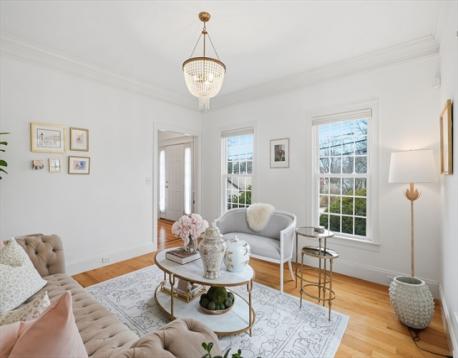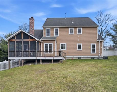 Elevated living awaits in this sun-filled center entrance Colonial! Thoughtfully designed for today’s lifestyle, the open floor plan offers seamless flow for entertaining. A beautifully updated kitchen with a generous island and dining area opens to an expansive front-to-back family room with soaring ceilings and a striking fireplace. Formal living room and an elegant dining room featuring wainscoting, crown molding and tray ceilings add timeless sophistication. Enjoy outdoor living from the back deck or the inviting three-season porch overlooking a fenced yard. Flexible first-floor bonus room perfect for a 5th bedroom, office, den, or playroom. The spacious primary suite features a cathedral ceiling, walk-in closet, with jacuzzi & shower. Oversized two-car garage with mudroom, abundant storage, and a lower level ready for finishing to create additional living space. Ideally situated near John Eliot Elementary, town center, commuter rail, and major routes.