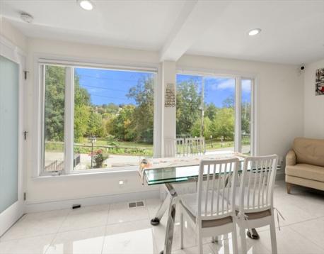 Stunning Renovated Home with River & Park Views | Duplex Layout + ADU Across from conservation land with park and river view, this beautifully rebuilt home (in 2019) blends luxury, flexibility, and comfort. The rare side-by-side duplex-style layout of the main house offers two separate living spaces (approx. 2,200 & 1,150 sq ft, not counting basement), perfect for extended families or flexible use. The master bedroom is ~570 sq ft with ceilings up to 11 ft. The main house includes 5 bedrooms, 4 full baths, and 2 half baths. A detached garage features a finished 2nd-floor suite functioning as an ADU—ideal as a studio, guest space, or office. Enjoy a private backyard with a unique three-tier retaining wall designed as an amphitheater—perfect for relaxing or entertaining. Total lot size: .46 acres.
