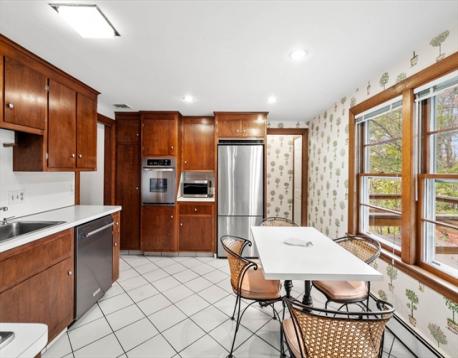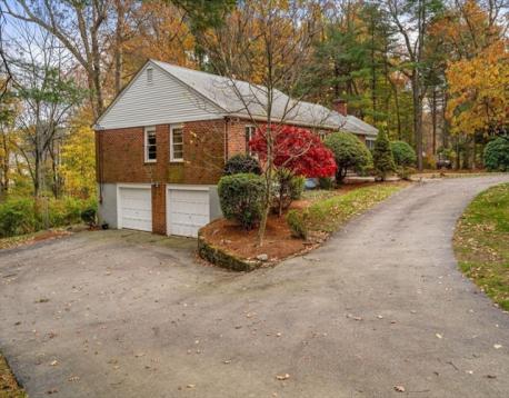 First time on market! Classic brick ranch on gorgeous 1 acre in cul-de-sac neighborhood - rare opportunity for Needham buyers seeking 1-lvl living or an expansive lot to create your dream home. 1-owner, pristine + meticulously maintained. U-shaped drive to front entry or 2-car gar. Elegant foyer opens to LR/DR w/ brick FP + large picture window. Mid-century perfection. Lg sunrm w/ slate flr offers indoor/outdoor living w/ access to bkyd. EIK w/ updated appliances + ample cabinetry. Huge deck off kitchen ideal for grilling, overlooking private yard. Fabulous wood-paneled den is a retro room perfect for TV + a cocktail. Mint hdwd flrs lead to 2 BRs, hall bath + primary ensuite w/ dbl closets. LL offers versatile finished space w/ FP, ½ bath, cedar closet, amazing storage + dedicated laundry area. Just .7 mi to Junction train + town ctr, 1.3 mi to Newman Elem, mins to Rte 95, A+ location. Needham voted #6 top places to live by Boston Mag in 2025.