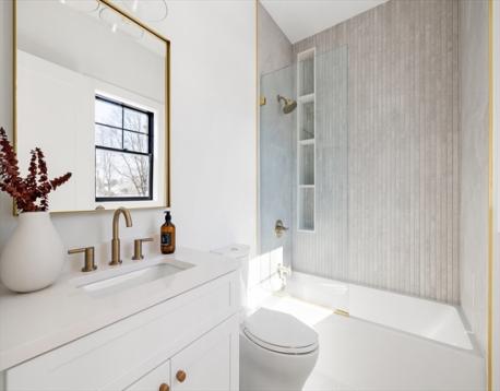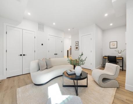 Only one remaining. Newly built townhome on a tree-lined street just steps from Needham Center. This modern single-family alternative offers four finished levels of living and an unbeatable location near Needham High School, Pollard Middle School, shops, restaurants, and the Commuter Rail. The first level features 9 ft ceilings, a fireplace, a thoughtfully designed kitchen that opens to a patio and yard, a powder room, and direct access to the garage. The second level includes a spacious primary suite with a walk-in closet and bath, plus two additional en suite bedrooms and laundry. The finished third floor offers a large flexible space with a full bath—ideal for a bedroom, playroom, office, or family room. The lower level adds even more space, including a recreation room, bedroom, and full bath. With four finished floors and space for everyone to spread out, this home delivers comfort, flexibility, and an exceptional Needham location.