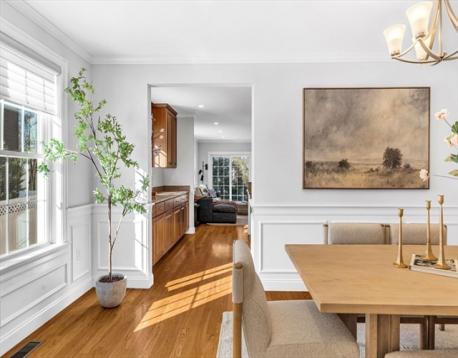 Sun-filled and turnkey, this newer-construction townhome offers exceptional space in the heart of Needham Heights—one block to the train and moments to shops, Rosemary Pool, and restaurants. Five bedrooms and four-and-a-half baths provide generous living space. The main level features a flexible office or guest bedroom with ensuite bath, dining room with wainscoting and crown moulding, and a granite kitchen with ample storage, gas cooking, and open flow to a brightly lit family room with gas fireplace and sliders to a private patio and fenced yard. Hardwood floors span the first and second levels. Upstairs, the primary suite includes a walk-in closet and ensuite bath, plus two additional bedrooms, a hall bath, and laundry. The finished walk-up attic with full bath is ideal for guests or a home office. The lower-level playroom features excellent ceiling height and adds flexibility, plus ample storage and direct access to a tandem garage. Exceptional space and flexibility—don’t miss it.