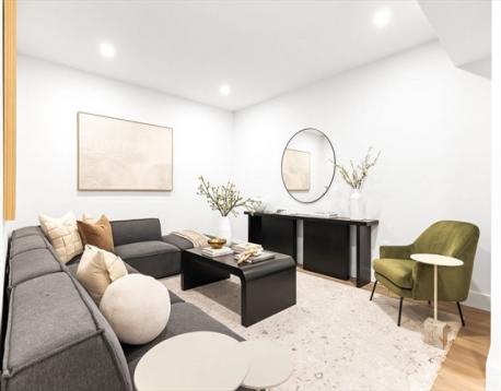 Only one left. Stunning newly built home located near Needham Center. This modern single-family alternative is drenched in sunlight and has a fabulous view of the grounds. The entry-level has 9 ft ceilings and an open floor plan in the living/dining room/kitchen: the living room features a stone fireplace; the chef’s kitchen is state-of-the-art and leads out to a patio and the beautiful yard. Direct access from the garage to a mudroom and a powder room. The second level features a primary suite with a spa-like bathroom and walk-in closet, two additional en suite bedrooms, and laundry. On the top floor, a large open area is perfect for an extra bedroom, playroom, or family room, including a full bathroom. The finished basement offers an entertainment/playroom and an additional bedroom and bathroom. This wonderful home is perfect for nesting and entertaining, and it's steps from great coffee shops, restaurants, Needham Center, Commuter Rail, and Mitchell Elementary.
