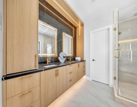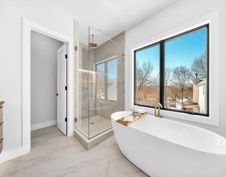 Great investment with this oversized duplex with almost 10,000 sq ft of luxury living space. New construction in one of the most convenient locations in Needham. Walk to everything in minutes. Luxurios large townhomes with the feel of a single family, each boasts all 6 en-suite bedrooms and a powder room. First floor 10-ft ceilings, custom kitchen with Thermador appliances. Desirable first floor en-suite bedroom or office, large family room with fireplace and dining area lead to oversized patio with fenced in yard. Second floor invites you to two en-suite bedrooms and a lavish master suite with His and Her closets and spa-like bathroom with heated floors. Top level includes large playroom, bedroom and a full bath. Walk out lower level with 9 ft ceilings, large entertainment room with wet bar and wine cooler, bedroom with full bath and a 2nd laundry. Build by a local premium builder with 1-year warranty. First floor-1,470x2. Second floor-1,456x2. Top floor-815x2. Lower level-1,212x2.