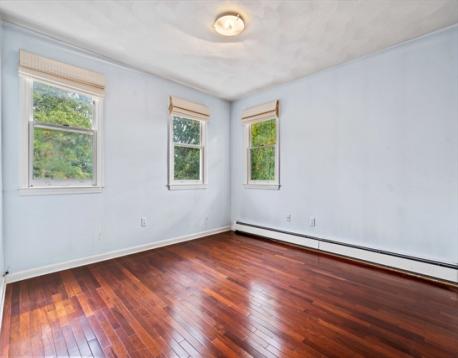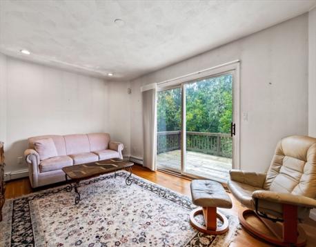 Built in 1996 this 3 level home abutting the Bay State Rail Trail has a very flexible floor plan for the living level. Sitting room off of the kitchen has a wood burning fireplace & Deck with sweeping woodsy views. First floor has garage, workshop, den (exercise room) and laundry, 2nd floor has open kitchen and family room. Kitchen has a great layout, plenty of granite countertops with peninsula for breakfast bar seating. Flexible floor plan allows for different uses of the living level. Living room has bow window and small office. 3rd floor has primary bedroom suite with double closets and a 5- piece bath with soaking tub, shower and 2 vanities. There are 2 more bedrooms and full bath. Pull down ladder for attic storage. Garage with interior access. Large yard stretches along the bay state rail trail. Professional Greenhouses in backyard can stay or we can remove them prior to closing. Fabulous setting back from the road. 6 minute drive to Needham Junction for commuter rail.