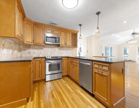 Discover the remarkable possibilities in this Spacious and versatile expanded ranch offers endless potential on a rare half-acre lot in a sought-after Needham neighborhood. The open floor plan features a welcoming living room with fireplace, a bright kitchen, and a family room with vaulted ceilings, skylights, a second fireplace, and sliders to an expansive deck overlooking a large private yard. The main level includes three generously sized bedrooms, 2.5 baths, and convenient laundry. The finished lower level adds flexibility with a home office, large recreation room, full bath, and bonus spaces. The level backyard is perfect for entertaining, a future pool, or sport court. Ideally located near schools, shops, trails, commuter rail, and just minutes to Boston.