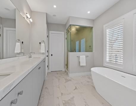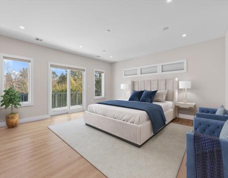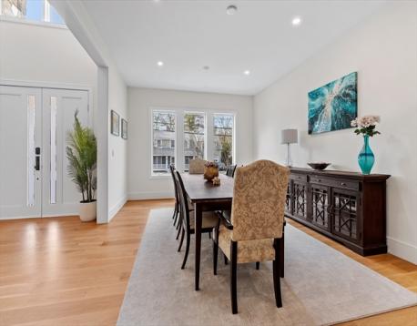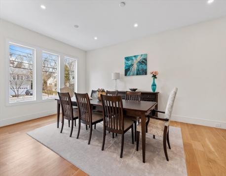 Custom designed contemporary residence offering refined luxury in one of Needham's most desirable neighborhoods. This architecturally striking home showcases exceptional craftsmanship, elevated finishes, and thoughtfully designed living spaces for today's lifestyle. A dramatic nearly 20-foot sunlit foyer opens to expansive living & entertaining areas, including a sophisticated family room & a chef's kitchen appointed w Thermador and Fisher & Paykel appliances, quartz surfaces, a generous island w seating for 5, dual dishwashers, refrigerator drawers, & wine fridge. All bedrooms are en-suite, including a luxurious primary suite w a private rear-facing balcony. The spa-inspired primary bath offers radiant heated floors, steam shower & soaking tub. The fully finished lower level is completed to perfection & features a private home gym, elegant au-pair suite, spacious bonus/media room, dedicated office, & a separate entrance - ideal for multi-generational living.