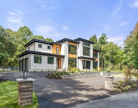 Your chance to make this stunning new construction yours! Located on a private cul-de-sac set on the Needham- Wellesley border. The grand two-story entrance features an open-concept layout with a living room, a formal dining room, a home office with a fireplace, a guest en suite, and a chef's kitchen with two islands, a walk-in pantry, and a breakfast/dining area overlooking a beautiful backyard. The side entrance includes a beautiful mudroom with lots of storage and access to a heated three-car garage. The second floor includes a primary suite with a private balcony, fireplace, spa bath, and the most luxurious custom walk-in closet, as well as three additional en-suite bedrooms and a laundry room. The lower level includes a guest en suite, media room, gym, entertainment lounge with a wet bar, dry sauna, and a walkout to the backyard. Outdoor area features a covered/uncovered patio, an outdoor kitchen, a fire pit, and an expansive yard. over one acre of flat land