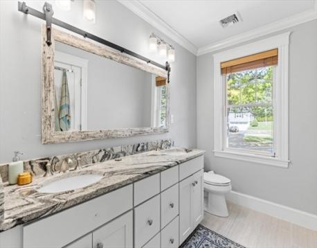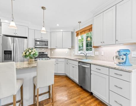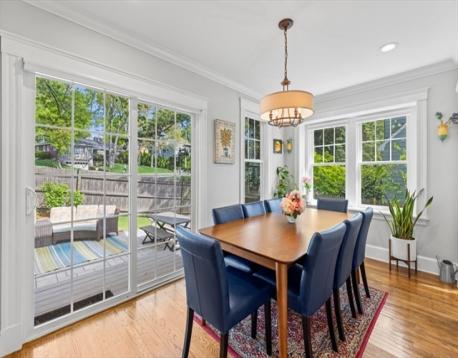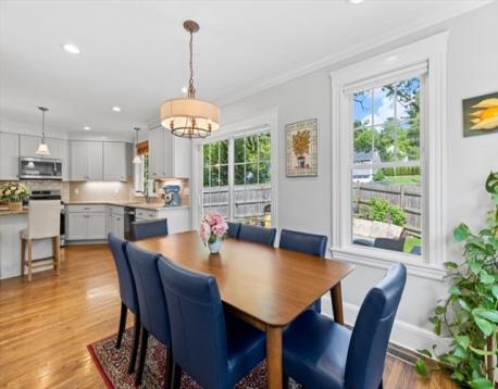 Nestled on one of Needham’s "ladder streets,” 8 Wilshire Park offers the perfect blend of location, lifestyle, and livability. Ideally situated just a block from beloved Perry Park, less than a mile from vibrant Needham Center, Broadmeadow Elementary, Pollard Middle School, and the Hersey train station, this home is a commuter’s dream and a family’s delight. Step inside to find a warm and inviting first floor featuring a beautifully renovated kitchen and a dining room with sliding doors that open to a stone patio and fenced yard—perfect for entertaining or relaxing. The front living room welcomes you just off the entryway, while a cozy den, updated half bath, and a mudroom with direct garage access complete the main level. Upstairs, you’ll find three bedrooms with an updated full hall bathroom with double vanities, a lovely primary suite with a renovated bathroom and walk-in closet, and convenient second-floor laundry. The finished lower level provides abundant flexible space/storage.