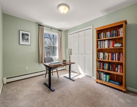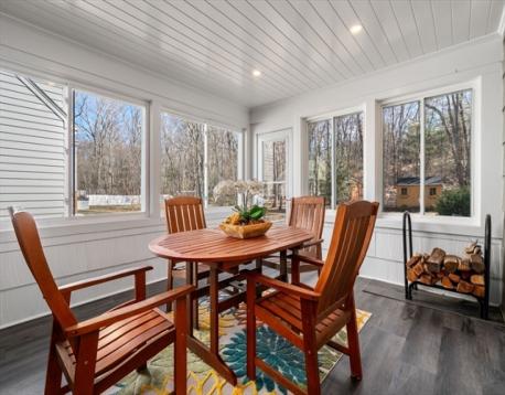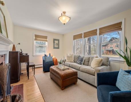 Tucked away at the end of a quiet street abutting the town forest, this pristine 4 bed, 2.5 bath colonial is gracefully set back on picturesque property. The main level offers a formal living room with fireplace, home office, & oversized family room surrounded by windows. A fireplace crafted with beautiful stone adds timeless New England charm. The open kitchen & dining area has double ovens and a large center island with ample space to cook & gather. 3 season porch, mudroom, & attached 1-car garage add ease. Upstairs you’ll find the primary suite with luxurious bath, a bay window overlooking the beautiful fenced yard & conservation land, 3 additional bedrooms & another full bath with double vanity. The finished lower level offers a rec room & abundant storage. The backyard shines with a sweeping lawn & patio for relaxing or entertaining. Enjoy nature & hiking trails just moments from your door, all close to schools, town center, & commuter routes. A home that just feels right.