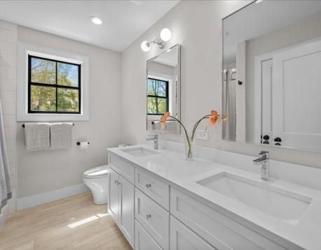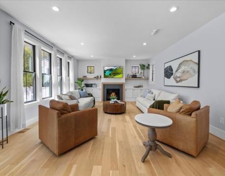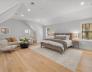 BEST Stress-free COMMUTER LOCATION, offering an exceptional blend of luxury, privacy & convenience. Better than new & set on a rare ½-acre level lot, this 2022 sun-filled home delivers over 6,000 sq ft of thoughtfully designed living space with refined finishes, custom built-ins & effortless indoor-outdoor flow. The rarely used chef’s kitchen features quartz counters, an oversized waterfall island, wine fridge, double ovens, gas cooking, walk-in pantry & pristine cabinetry all opening to a stunning fireplaced family room with gorgeous private views of yard. Enjoy formal dining, a grand home office & large mudroom with yard access. The spa-inspired primary suite offers two walk-in closets, lounge area & spa bath, three additional bedrooms, laundry are on the second floor. A third-floor bonus room, ensuite bedroom & storage. Finished lower level with game room, gym, 6th ensuite bedroom, complete this exceptional offering-Oversized garage, natural gas, sprinkler, alarm & close to town!
