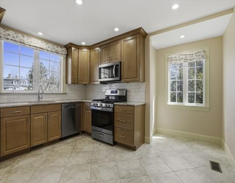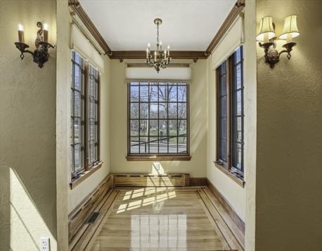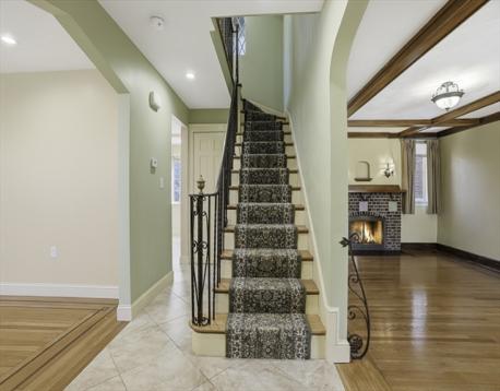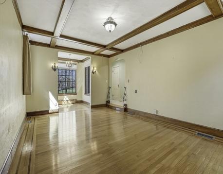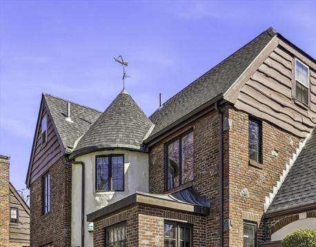 Classic Newton Corner Tudor maintaining original architectural details that beautifully reflect the home’s heritage, complemented by thoughtful modern updates. The first floor features a gorgeous living room with a wood-beamed ceiling, fireplace and gleaming hardwood inlay floors, a fully renovated kitchen with stainless steel appliances and tile flooring, inviting dining room and half bath complete the main level. Upstairs offers three generous bedrooms, updated bathroom featuring an easy access shower and marble floor. The primary suite includes a walk-in closet with diamond pane window and French doors opening to a private, sun-soaked sitting area. Upgrades completed in 2023 include replacement windows, irrigation system, central A/C, hydro heating, recessed lighting. Ample storage throughout with numerous closets, a full basement, and a large walk-up attic. A one-car garage adds everyday convenience. An iconic grasshopper weather vane crowns the home. Close to Mass Pike and park.