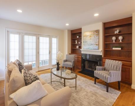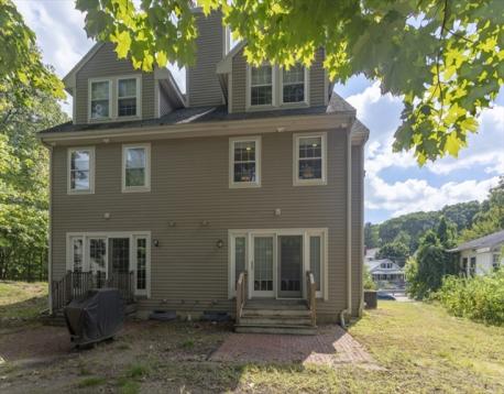 Commuter's Dream in Newton Highlands – Just Steps from Eliot T Station. Welcome to this beautifully maintained Newton Highlands residence, offering the perfect blend of comfort, convenience, and timeless charm. Thoughtfully designed across three spacious levels, the home features two private primary suites (one with a soothing jacuzzi tub), plus a guest bedroom, three full bathrooms, and a convenient half bath on the main level. Gleaming hardwood floors flow throughout, enhancing the warm and welcoming ambiance. The cozy living room invites relaxation with its elegant fireplace, custom cherry bookcases, and graceful French doors that open to a charming brick patio and private backyard—ideal for entertaining or enjoying quiet moments outdoors. The sunlit, south-facing kitchen is a true highlight, boasting granite countertops, stainless steel appliances, and ample cabinetry. It opens to a generous dining area perfect for hosting gatherings. Located just steps from Eliot T Station