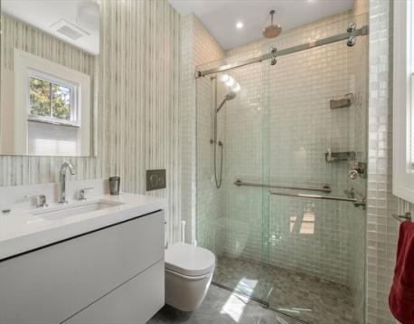 Experience refined luxury in this exceptional modern residence, masterfully designed by Alan Mayer Associates and Benchmark Builders. Showcasing sophisticated custom finishes, this home is ideally near the vibrant shops, dining, and transportation of Newton Highlands village. Soaring ceilings and walls of oversized windows flood the open-concept spaces with natural light, highlighting the sleek kitchen, designer lighting, and premium millwork. An elevator offers unparalleled convenience and accessibility. The home is further enhanced by a two-car attached heated garage, a Lutron smart lighting system, and FlowLogic water protection for peace of mind. The second-floor features four generously sized bedrooms, including two ensuite baths, while the third floor and main-level office provide flexible options for additional bedrooms or work space. An additional 1,400sf in the lower level is ready for customization and designed for two bedrooms with plumbing in place for a full bath.