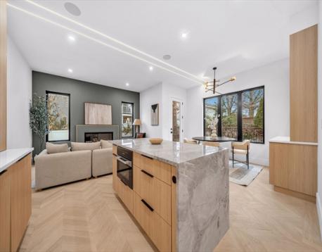 Welcome to the Waban. New construction townhouse that lives like a single family home. The 1st floor has an open living and dining space with designer kitchen fitted with custom cabinetry, Miele appliances and chevron hardwood floor. The living area opens to the back stone paved patio and fenced in yard. The 2nd floor has 3 spacious bedrooms with a primary suite with walk-in closet. The 4th level is a spacious loft, ideal as an office or playroom, complete with a full bathroom. The lower level has tall ceilings, a family room with fireplace, custom wetbar and beverage center and 1/2 bath which makes movie night ideal. In addition each unit will enjoy parking for 3 cars and located directly behind the newly renovated Lincoln Elliot elementary school and playground. Enjoy the proximity restaurants, public transportion, parks and convenient to the highway (Mass Pike).