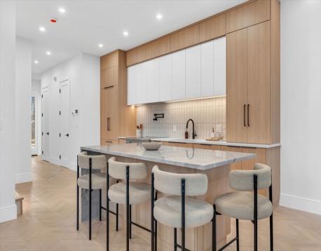 Welcome to the Waban. New construction townhouse that lives like a single family home. The 1st floor has an open living and dining space with designer kitchen fitted with custom cabinetry, Miele appliances and chevron hardwood floor. The living area opens to the back stone paved patio and fenced in yard. The 2nd floor has 3 spacious bedrooms with a primary suite with walk-in closet. The 4th level is a spacious loft, ideal as an office or playroom, complete with a full bathroom. The lower level has tall ceilings, a family room with fireplace, custom wetbar and beverage center and 1/2 bath which makes movie night ideal. In addition each unit will enjoy parking for 3 cars and located directly behind the newly renovated Lincoln Elliot elementary school and playground. Enjoy the proximity restaurants, public transportion, parks and convenient to the highway (Mass Pike).