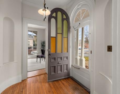 Enjoy views of Burr Park from this timeless 1850 Victorian in the heart of the Farlow and Kenrick Parks Historic District. The arched front door opens to a distinctive entrance with a circular layout connecting to the grand-scale main-floor rooms. High ceilings, abundant natural light, floor-to-ceiling windows, hardwood floors and original period details are found throughout. Tiled fireplaces enhance the spacious living room and adjacent dining room with its spectacular decorative ceiling. The eat-in kitchen offers direct access to the deck for al fresco dining. Upstairs find a large primary bedroom with ensuite bath, a sun-filled sitting room with arched windows, two additional bedrooms and a full bath. The third level includes a fourth bedroom with walk-in closet and a skylit family room. A finished lower level has a private entry,1.5 baths, laundry and flexible spaces. Ideally located near schools, Burr Park, Pike, Cambridge & Boston!