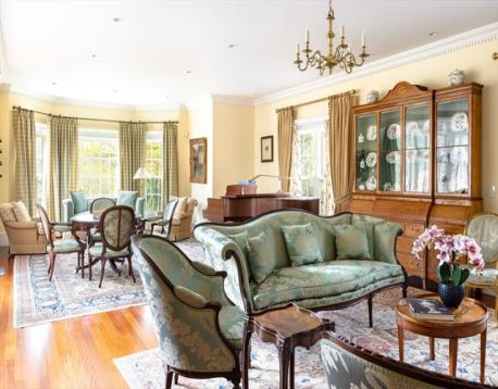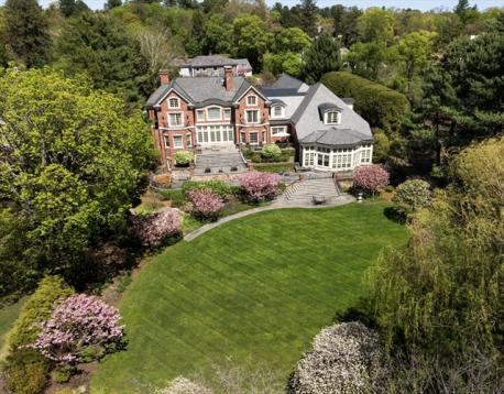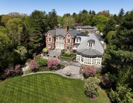 Set on exquisitely landscaped, private grounds overlooking Brae Burn Country Club, this stunning estate delivers sophisticated living at every turn. The first floor flows through gracious living and dining rooms, a handsome paneled library, chef's kitchen, family room, two powder rooms, mudroom, and garage. The primary suite is a sanctuary — dressing room, spa bath, bonus room, and a private balcony with sweeping views. Five additional bedroom suites complete the second floor; a third-floor guest suite with ensuite offers privacy and comfort for visitors. The lower level is extraordinary: indoor pool, regulation squash court, gym, sauna, wet bar, home theatre, game room, and guest suite. Elevator to three main floors. A heated three-car garage and heated driveway complete the home. Easy access to the Pike and Route 128, while maintaining a peaceful, private setting. Few properties in the area offer this level of scale, finish, and amenity.