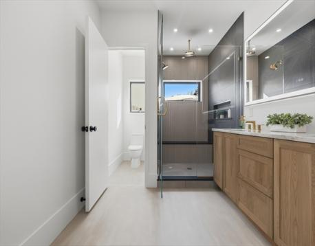 Stunning new construction multi-level home offering just under 4,000 sq ft of thoughtfully designed living space.This 5-bedroom, 5.5-bath residence combines modern craftsmanship with elevated finishes and flexible living areas across four finished levels. The main level showcases an open-concept design with 10’ ceilings, wide-plank white oak floors, and seamless indoor-outdoor flow. The chef’s kitchen includes custom cabinetry, quartz countertops, walk-in pantry, and paneled Thermador appliances. The family room features an electric fireplace and opens to a covered deck and fenced in yard. A mudroom, powder room, and heated garage access complete this level. The 2nd floor offers a luxurious primary suite with custom walk-in closet, fireplace, spa-like bath, and private covered deck, plus two additional en-suite bedrooms and a spacious laundry room. Ideally located close to schools, shops, dining, and major routes, this home delivers exceptional quality, design, and functionality.