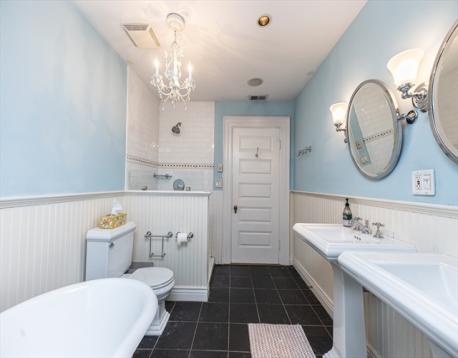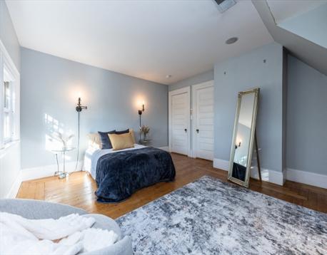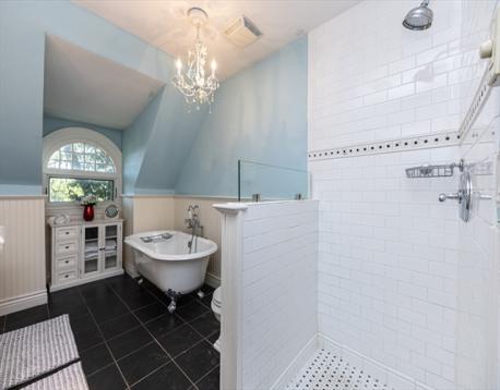 NEW! Entire Top Floor 3-Bed 1.5-Bath Newton Condo in Victorian-style 4-unit building. Step into a charming, sunny, and spacious living room with large vaulted ceilings, a fireplace, and custom window seating surrounded by 5 south-facing windows. The half bath is conveniently situated between the living area and the Breathtaking High-end Kitchen, which features: Sub-Zero refrigerator/freezer, 6-burner Wolf Gas Range, Custom-built Butcher-block Island with a *secondary* Copper Sink + plug-in outlets on the side, Dishwasher, Disposal, and even a Built-in Wine Chiller. Walk-in pantry + Private Porch complete the must-see Kitchen. 2 oversize bedrooms, 1 regular sized. Double-sink Luxury Bathroom with standing shower + soaking tub. Conveniently located in Hunnewell Hill, this condo has the perfect balance of immediate highway access while maintaining the suburban neighborhood feel. 2 off-street parking spots. Laundry closet with hook ups in-unit. Central Air, Surround Sound and much more!