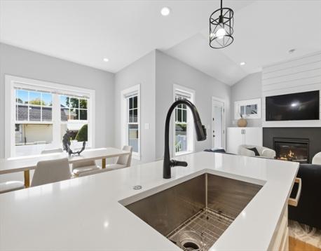 Welcome home to this stunning townhome, built from the ground up in 2020 and thoughtfully designed for modern living in the highly desirable village of Newtonville. A welcoming foyer with custom bench seating and cubbies sets the tone for comfort and style. Sunlight fills the open-concept living area, creating a warm and inviting space perfect for everyday living and entertaining. The kitchen features white shaker cabinetry, gas stainless steel appliances, & a pantry, flowing into a bright dining area surrounded by windows. The family room is anchored by a gas fireplace with custom built-ins & dramatic shiplap extending to the cathedral ceiling, opens to a spacious patio, ideal for relaxing or hosting gatherings. Upstairs, the serene primary suite offers a generous closet & elegant bath, along with 2 additional bedrooms and a full bath. The finished lower level provides flexible space for guests, a home office, or recreation, just moments from parks, shops & commuter rail.