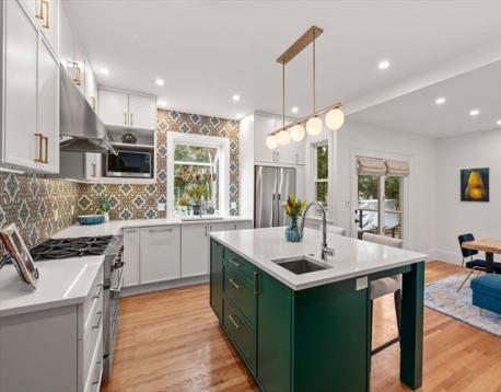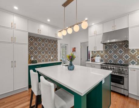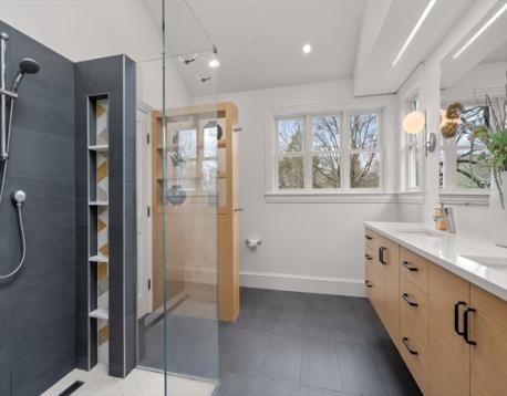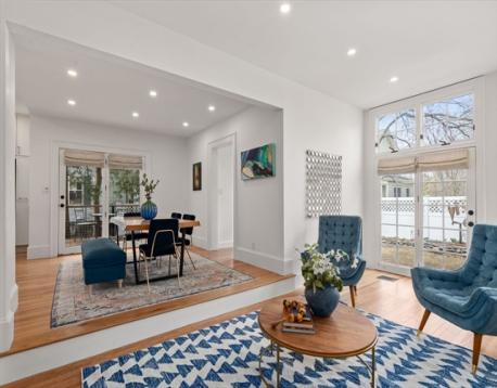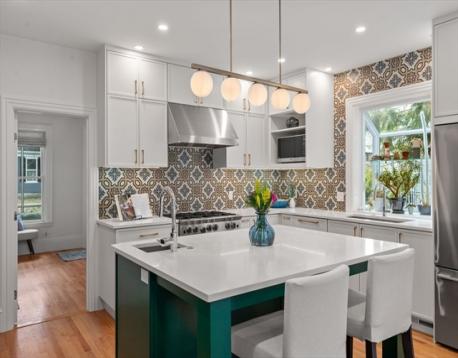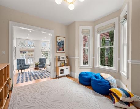 Truly special Victorian-style home in the heart of Newton Highlands that has been extensively renovated since 2019 with no stone unturned. First floor offers an abundance of sun-filled living space- formal living room, gracious step-down family room w/ large windows overlooking the fenced-in backyard, adjoined by a flex space that could be an office or playroom. Gorgeous chef's kitchen w/ greenhouse window & sprawling island that opens into dining space, a side entry mudroom & half bath. Second floor offers 4 full bedrooms, including a private primary BR w/ skylights, custom built-in bench, walk-in closet & en-suite bath w/ heated floors. Hardwood floors throughout, plus central air, tankless water heater, custom blinds & full basement. Beautiful outdoor space w/ a screened-in front porch, side deck & fenced-in, tree-covered backyard. Incredible location minutes to the Green Line, Crystal Lake, Hyde Community Center & Playground, Cold Spring Park, as well as many shops & restaurants.
