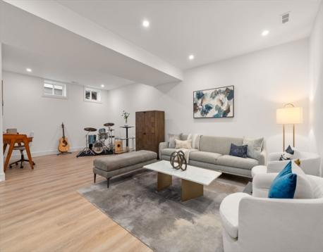 Welcome home to this exceptional new construction townhouse on prestigious Carriage Road along Commonwealth Avenue. This 5-bedroom, 4.5-bath residence blends sophisticated design with effortless functionality, featuring soaring ceilings, rich hardwood floors, coffered detailing, and a striking chevron shiplap fireplace anchoring the sun-filled living space. The chef’s kitchen is thoughtfully designed with premium appliances, custom cabinetry, quartz countertops, and an oversized island ideal for gathering and entertaining. The luxurious primary suite offers a generous walk-in closet and a spa-caliber bath with a dramatic double shower and refined finishes. A finished third level provides flexible space for office, playroom, or lounge, while the expansive lower level is perfect for a gym, media room, or guest retreat. Ideally located near Auburndale Village, commuter rail, parks, restaurants, and major routes, this home delivers elevated living in one of Newton’s most desirable areas.