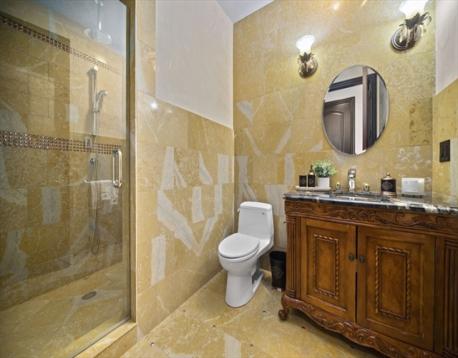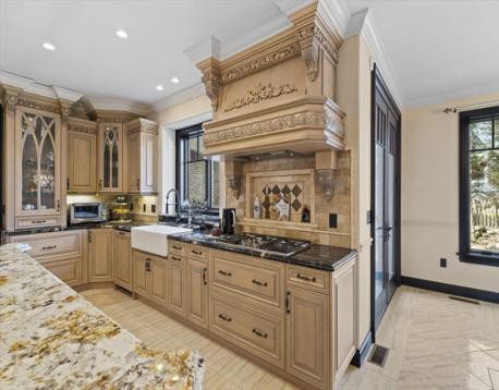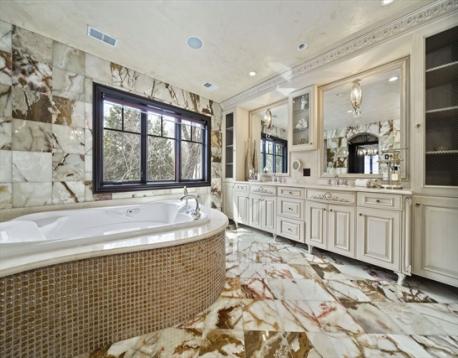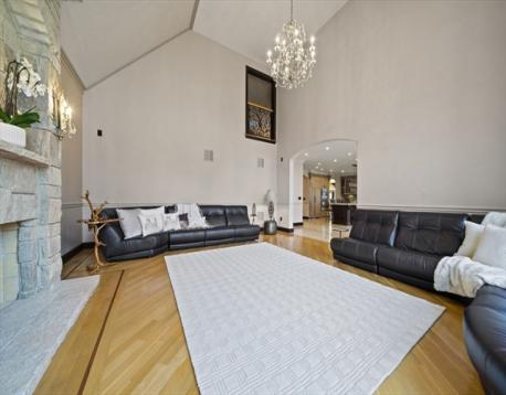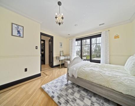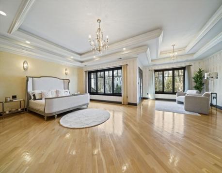 Located on a quiet Newton Centre cul-de-sac, this custom-built stone-front Contemporary Colonial offers approx. 7,000 sq ft on a level lot with 5 oversized en-suite bedrooms, including a first-floor guest suite. The second floor features a primary suite with Juliet balcony, fireplace, and spa bath with onyx tile, heated floors, steam shower, and Maxx Jacuzzi, plus two additional en-suite bedrooms and a laundry room. A private top-floor 5th en-suite also includes a Maxx Jacuzzi. Designed with a great layout for family gatherings and entertaining, highlights include rare full-masonry stone-and-brick front exterior, covered patio with real masonry fireplace, mahogany doors, arched dining room windows, and dramatic cast-iron staircase with loft overlook. Fredrick Ramond & Feiss lighting, surround sound, cedar closet, and 3-car heated garage. Heated lower level with 8.5' ceilings, 4 egress windows, and plumbing for future bath. Close to Chestnut Hill Shopping Center, and top rated schools.