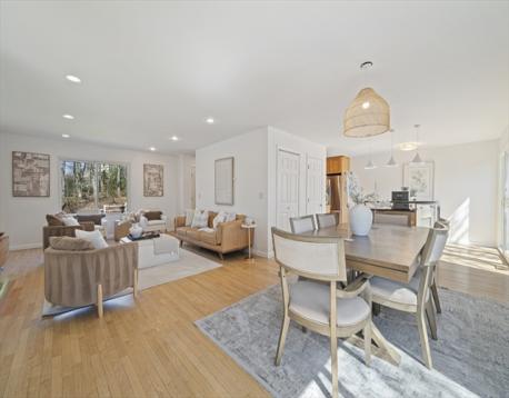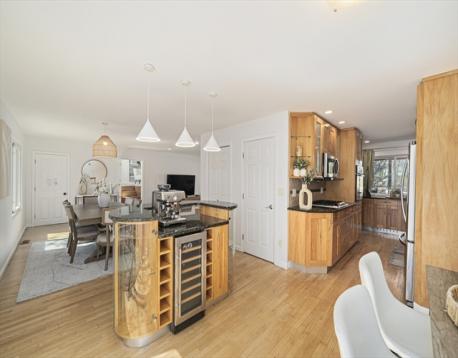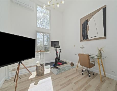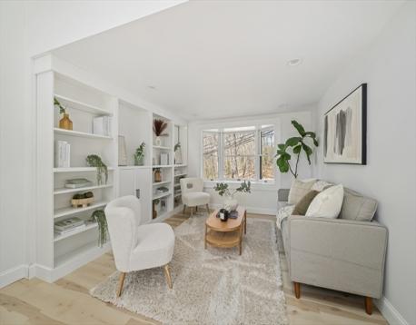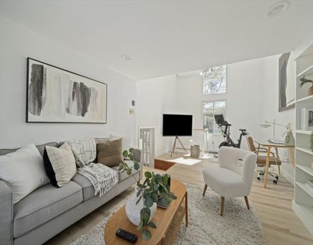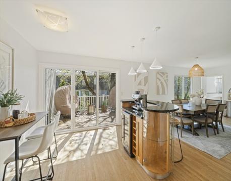 Delightful Chestnut Hill townhouse lives like a single family home with 2,850 sq ft. Open floor plan, updated living space, privacy, and leafy green views! Fabulously sunny and recently renovated lofted family room addition spans the height of two levels, offering soaring ceilings, skylights, built-in bookshelves and picture windows. Gourmet kitchen outfitted with wall oven, countertop range, microwave and glass display cabinets is perfect for entertaining, presenting a stylish serving island with beverage cooler. Accessible through sliders off the kitchen, a spacious deck overlooks a private yard and patio, offering multiple areas for entertaining. The second floor provides 4 spacious bedrooms, including a primary bedroom with en suite bath, and an additional bathroom. On the lower level there is a recently renovated media room, a play room, laundry room and storage. One-car direct-entry garage, and a wide driveway with 4 more parking spots. Views of Kesseler Woods across the street.