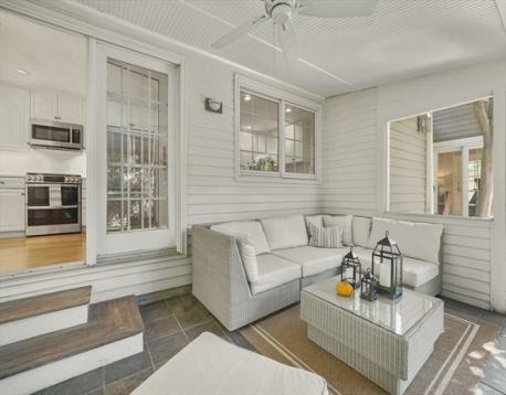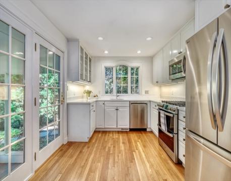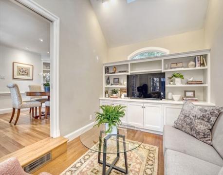 Nestled on a quiet tree lined street this delightful three bedroom, two bath Cape exudes warmth and charm. The home's beautiful curb appeal welcomes you inside to a light filled living room featuring a fireplace and hardwood floors. The open flow continues into the dining room and a comfortable TV room or den with sliding doors leading to the lovely patio. An updated kitchen features newer appliances, quartz counters and ample cabinetry. A convenient work area off the kitchen includes built in cabinets and desk, storage. The first floor bedroom and bath add versatility, perfect for a primary bedroom, office or guest room. Upstairs are two inviting bedrooms filled with natural light and a bath. Enjoy relaxing and entertaining on the lovely screened porch overlooking a well landscaped backyard and patio, creating a seamless connection between indoor and outdoor living. Additional finished space in lower level, central ac, & whole home generator.