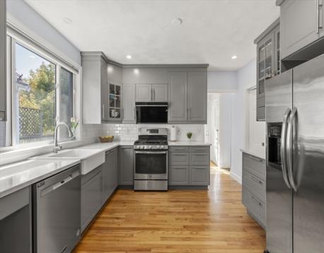 Welcome to 212-214 River Street in West Newton. This spacious two-level condominium offers 4 bedrooms & 2 full baths within a classic two-family style home. Filled with natural light from abundant windows, the interior showcases charm, character, gleaming hardwood floors, and period details throughout. The main level features a cozy living room that flows into the formal dining room & an upgraded kitchen w/custom cabinetry & quartz countertops. Three bedrooms, a full bath, & in-unit laundry complete this floor. Upstairs, the 2nd level (3rd floor) provides flexible space—perfect for a home office, playroom, or gym, —along with an additional bedroom & full bath.Enjoy dining al fresco on the back deck or tending to the garden, a true highlight of the property. Additional conveniences include two off-street parking & an excellent location just a block from the elementary school, close to restaurants, shops, commuter rail, express bus, & easy access to Routes 90 and 128, Boston & Cambridge