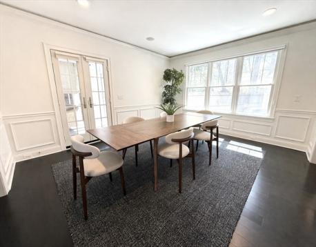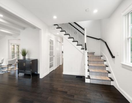 Nestled on one of Newtonville's most coveted streets, this updated colonial boasts a three-car garage. Enter through the front foyer or the side mudroom, you are greeted by a spacious layout. The living room seamlessly flows into the dining room, with beautifully crafted millwork and steps out onto a screened porch, perfect for outdoor entertaining. The first floor offers an open concept design, with a central kitchen that connects to the dining room and a large family room. The eat-in kitchen is complete with a large island, ample storage and pantry. Upstairs, four bedrooms, including a luxurious primary suite with a walk-in closet, laundry, and a large second-story deck. The third floor boasts a versatile bonus space and art room. The lower level provides a gym, bonus playroom, theater and full bathroom. Just a short distance to the shops, restaurants, and public transportation in Newtonville, and only minutes from major routes to Boston and Cambridge.