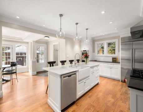 On a picturesque street in the prestigious Ward School neighborhood, this exquisite and thoughtfully renovated storybook English Tudor blends timeless charm with modern luxury. Step through the arched front doorway into a gracious fireplaced living room with a coffered ceiling, custom built-ins and French doors that open to a bright sunroom—currently used as a home office. Triple leaded-glass windows and wainscoting decorate the elegant dining room. A comprehensive 2016 renovation created an expansive, open-concept gourmet kitchen with high-end finishes, luxury appliances, a large window-lined breakfast area, walk-in pantry, mudroom, powder room and access to the gorgeous landscaped backyard that can be viewed from the mahogany deck and bluestone patio. Upstairs find the tranquil primary suite with spa-like bath, walk-in closet and 2 more bedrooms—one with a new ensuite bath and walk-in closet as well as a new study and laundry area. Close to the Pike, Newton Centre, schools and more!