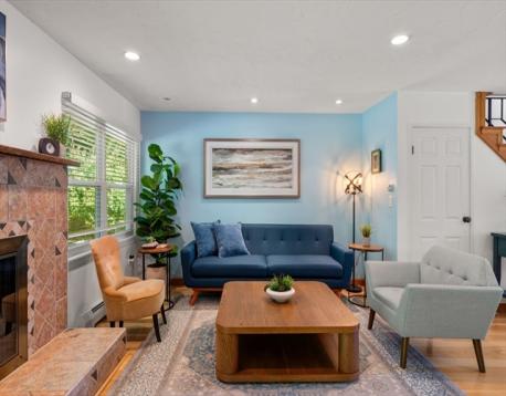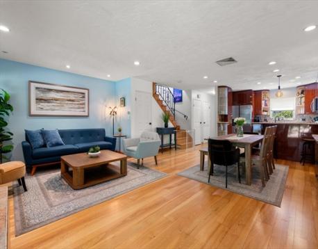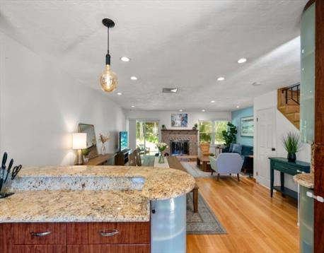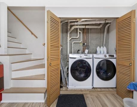 This move-in ready, updated 2 bedroom, 2.5 bath townhouse won’t last! This home has a beautiful kitchen with sleek wood cabinetry, granite countertops, breakfast bar and stainless steel appliances. The kitchen opens into the elegant dining room and living room with a wood burning fireplace and leads out to a patio perfect for relaxing and outdoor dining. The master bedroom has an ensuite bath and three large closets. The second bedroom also has a full ensuite bath. The lower level has a large finished room, perfect for a family room, office, gym, or guest space. Updates include Furnace (2016), roof, siding and parking lot (2011), washer, dryer, and dishwasher (2019) and electric panel (2020). Close to the Auburndale Cove, Norumbega Park, walking trails along the Charles River, schools and shopping including Star Market and Starbucks. Convenient to public transportation including the commuter rail, green line, and the express bus to Boston, and to the Mass Pike I/90 and RT 128/95.