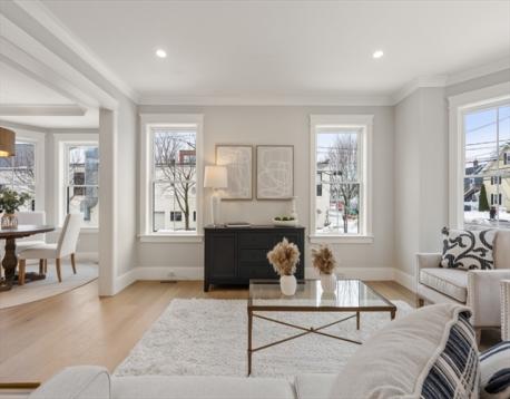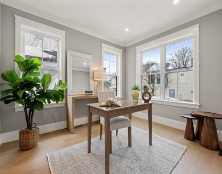 Perfectly positioned just moments from Forte Park and the Charles River Greenway, 235 California Street is a meticulously crafted new construction townhome blending timeless design with modern sophistication. Bathed in natural light, this 4-bedroom, 4.5-bath residence offers over 3,700 square feet across four finished levels. The main level is designed for seamless living and entertaining, featuring an expansive open-concept kitchen, dining, and living area, complemented by a private study, mudroom, pantry, and powder room. Upstairs, four well-appointed bedrooms include two luxurious primary-style suites with spa-inspired baths and two generously sized guest rooms. The lower level offers a versatile media or fitness space, plus a second office and full bath. A private patio leads to a driveway with covered parking and additional off-street spaces.