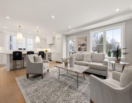 Perfectly positioned just moments from Forte Park and the Charles River Greenway, 237 California Street is a meticulously crafted new construction townhome blending timeless design with modern sophistication. Bathed in natural light, this 4-bedroom, 4.5-bath residence offers over 4,700 square feet across four finished levels with a two car garage. The main level is designed for seamless living and entertaining, featuring an expansive open-concept kitchen, and living area, complemented by a private study, mudroom, pantry, formal dining room, and powder room. Upstairs, four well-appointed bedrooms include a luxurious primary suite with spa-inspired bath, and two generously sized guest rooms. The third floor guest suite is perfect for long term guests, or an au pair. The lower level offers a versatile media or fitness space, plus a second office and full bath. A private patio leads to your size yard, and a private driveway has 2 car garage parking, with space for 2 additional cars