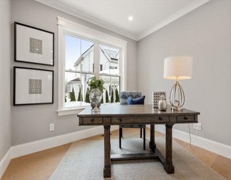 Perfectly positioned just moments from Forte Park and the Charles River Greenway, 237 California Street is a meticulously crafted new construction townhome blending timeless design with modern sophistication. Bathed in natural light, this 4-bedroom, 4.5-bath residence offers over 4,700 square feet across four finished levels with a two car garage. The main level is designed for seamless living and entertaining, featuring an expansive open-concept kitchen, and living area, complemented by a private study, mudroom, pantry, formal dining room, and powder room. Upstairs, four well-appointed bedrooms include a luxurious primary suite with spa-inspired bath, and two generously sized guest rooms. The third floor guest suite is perfect for long term guests, or an au pair. The lower level offers a versatile media or fitness space, plus a second office and full bath. A private patio leads to your size yard, and a private driveway has 2 car garage parking, with space for 2 additional cars