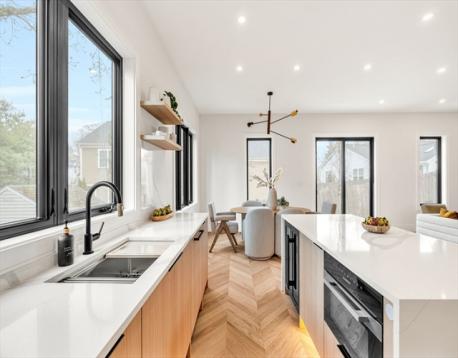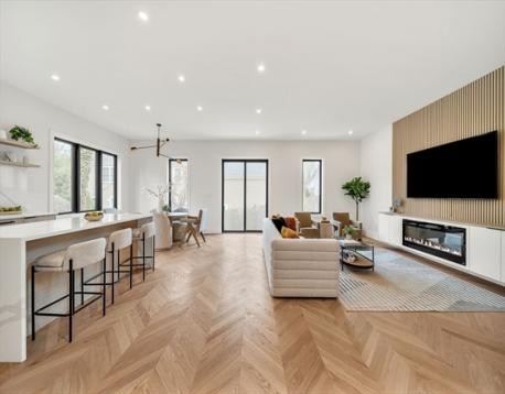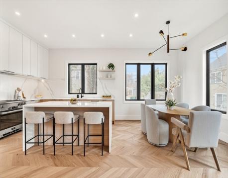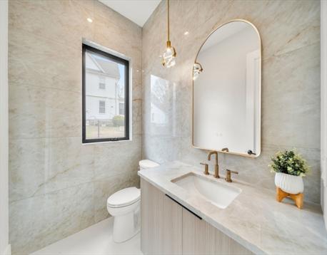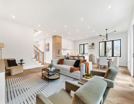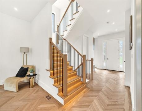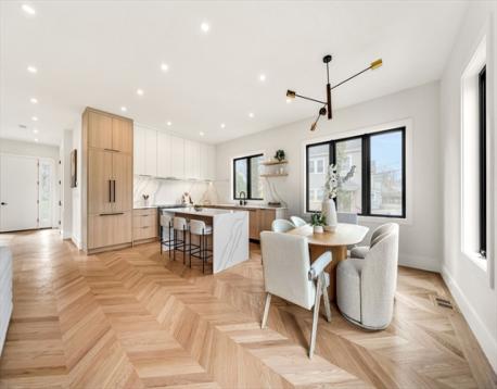 Striking new construction thoughtfully designed for modern living, the open floor plan is complimented by high ceilings and the finest finishes.The 1st floor has an open living and dining space with designer kitchen fitted with custom cabinetry, Miele appliances and chevron hardwood floors. The living area opens to the back stone paved patio and fenced in yard. The 2nd floor has 3 spacious bedrooms with a primary suite with walk-in closet. The 4th level is a spacious loft, ideal as an office or playroom, complete with a bathroom. The lower level has tall ceilings, a family room, custom wet bar and beverage center, bedroom and full bath. In addition will enjoy parking for 3 cars. Enjoy the proximity restaurants, public transportion, parks and minutes into Boston.