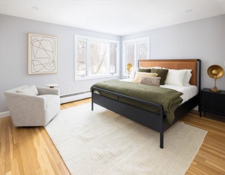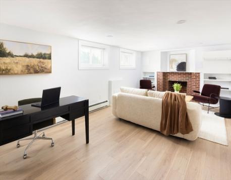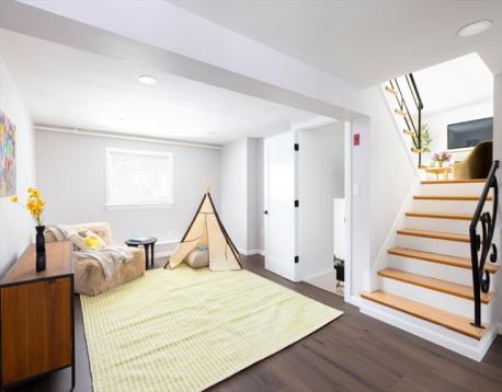This stylish and meticulously renovated split-level residence in Newton Centre is truly beautiful. The open-concept floor plan welcomes you with a spacious living room with fireplace, an elegant dining area, and a renovated kitchen overlooking the level, fenced-in backyard. Off the kitchen, the sun-filled family room, with windows on all sides, opens to a wonderful deck, perfect for entertaining. Upstairs, the primary bedroom suite features a renovated bathroom, complemented by two additional generously sized bedrooms and another updated full bathroom. The versatile lower level offers a renovated full bathroom, playroom, and flexible space that can serve as a bedroom or second living area. Additional highlights include ample storage, a fabulous mudroom, and direct access to an oversized garage. This property features renovated systems, insulation, hardwood floors, central air conditioning, and EV charger. Convenient to Newton Centre, top-rated schools, the T, and major routes.