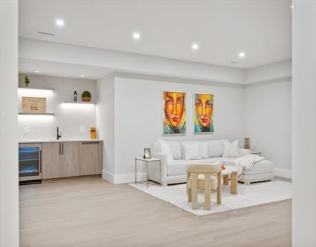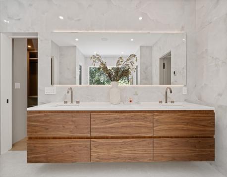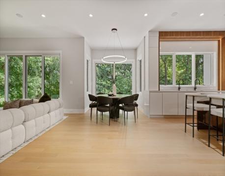 Elegance, scale, and exceptional craftsmanship define this stunning new-construction home on a private Newton cul-de-sac. A striking mahogany pivot door opens to soaring ceilings and sun-filled living and dining spaces with a Cristallo quartzite powder room. The chef’s kitchen anchors the home with custom cabinetry, quartz island, butler’s pantry, and top-tier Sub-Zero, Wolf, and Miele appliances, flowing into a breakfast area and family room with linear fireplace. The first floor includes a bedroom with full bath, mudroom, and direct garage access. Upstairs, the primary suite offers a fireplace, radiant heated bath floors, and walk-in closet, plus three ensuite bedrooms and laundry. The finished lower level features a sauna, steam, gym, lounge, wet bar, media wall, two full baths, bedroom, and golf simulator-ready room.