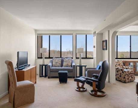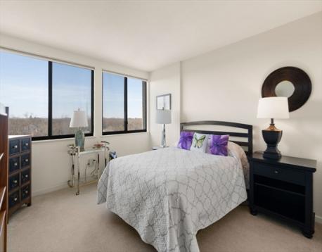 Chestnut Hill! Feel the quiet and calm elegance of this sun-filled 2 bedroom 2 bath condominium at the Chestnut Hill Towers. Watch the changing New England seasons above the colorful treetops from the 11th floor. An abundance of natural light and gorgeous sunsets off in the west make this open floor plan home perfect for entertaining. The spacious primary suite includes ensuite bathroom and 2 separate sinks. Closet space abounds with the primary walk-in closet and 2 double closets located in the entry and in the second bedroom. Amenities include 24/7 concierge, indoor swimming pool, clubhouse, library, exercise room, pickleball court, tennis courts, basketball court, gardening club, fire pit, grills, 2 elevators, locked package room, bike racks, 2 resident lounges, library, children's play spaces, ping pong, foosball in the game room and so much more. One prime deeded indoor garage parking space close to the elevator! Laundry in the unit! Minutes to Longwood Medical.