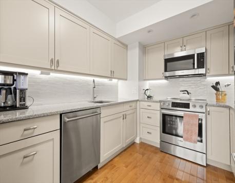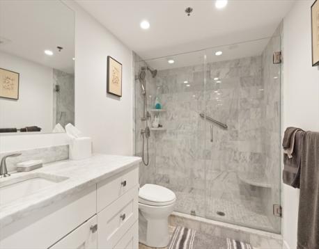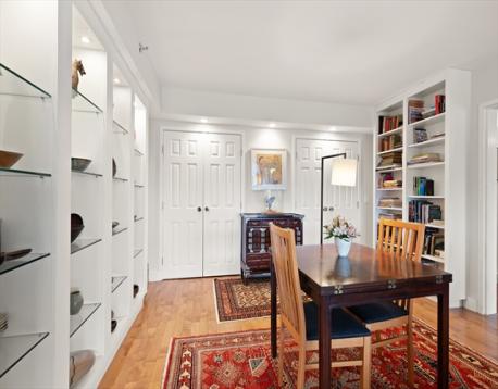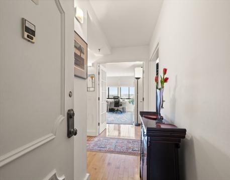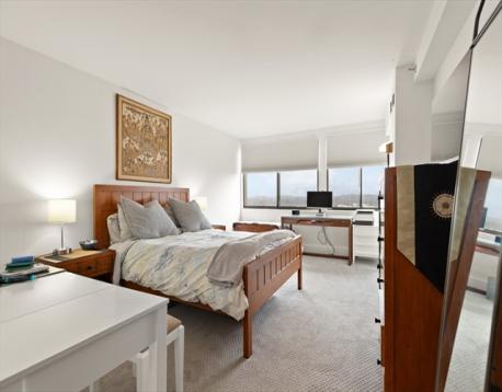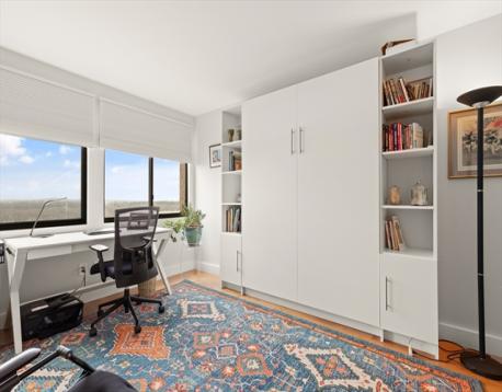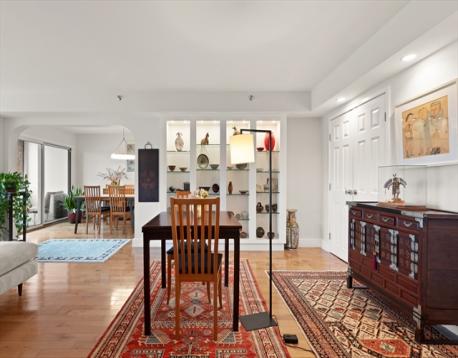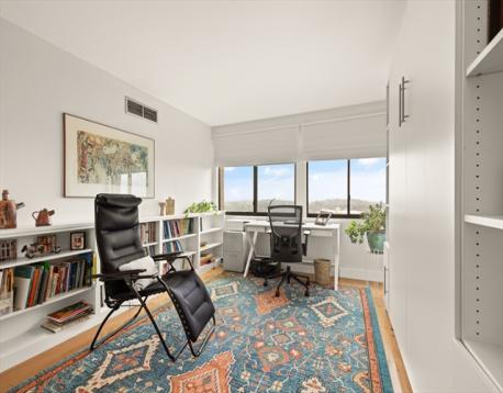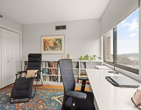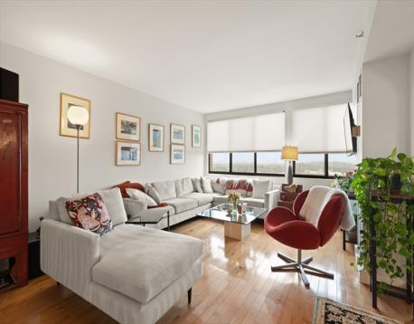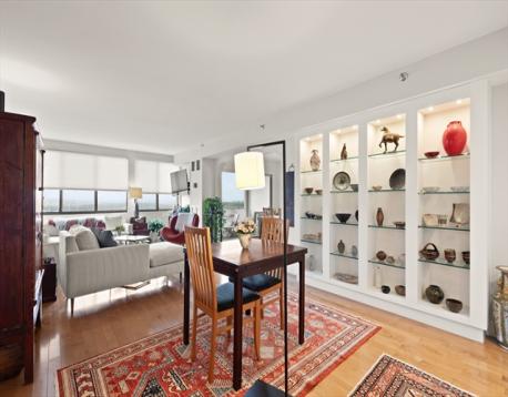 Sun-flooded 15th floor SW-facing showpiece! The largest 2BR/2BA floorplan at The Towers of Chestnut Hill has been transformed into a gorgeous turn-key residence. Beautiful HW floors, custom millwork & recessed lighting set the tone. Chef's kitchen boasts high-end custom cabinetry, counter seating & large dinette opening to a private balcony via glass sliders. The ultra-bright open LR/DR is made for entertaining. Primary suite features a huge finished WIC & beautifully appointed en-suite bath w/ radiant heat floors. Storage lovers rejoice—exceptional closet space throughout, custom built-ins w/ accent lighting & a clever Murphy bed maximize every inch. In-unit laundry, central A/C, garage pkg w/ bike storage. Furniture optionally available for sale. Live the good life—24/7 concierge, indoor heated pool, fitness center, sauna, pickleball/tennis courts, all on 17 manicured acres. Near Wegmans, The Street, Chestnut Hill Mall, MBTA to Longwood Medical. This one sparks Joy and you Deserve it