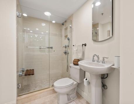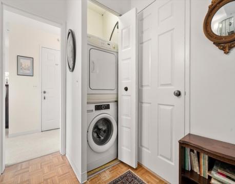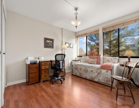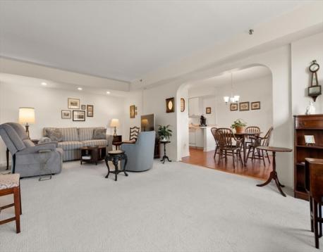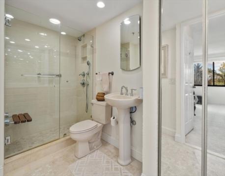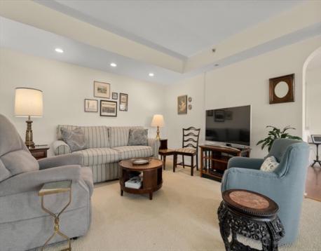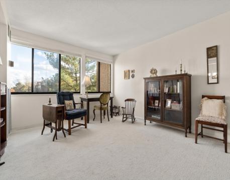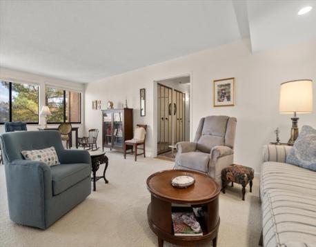 South facing, pristine 2 bedroom/ 2 bathroom unit in The Towers of Chestnut Hill! This wonderful condominium on the 6th floor has treetop views and features a 14' x 26' Living/Dining Room which opens to an all white E-I-K with Corian counters, a peninsula, and a private covered balcony. Separate from the living spaces are two bedrooms. The spacious primary bedroom has an outfitted walk-in closet and an ensuite full bathroom with a frameless glass shower, vanity, linen closet, and pedestal sink. There is also a second bedroom and another full bathroom off the foyer. Amenities include: in-unit laundry, 1 garage parking space, elevators, an indoor pool, tennis and pickle ball courts, exercise room, library, function room, 24/7 concierge/security and many association events. The Chestnut Hill Mall, The Street, and public transportation all nearby!