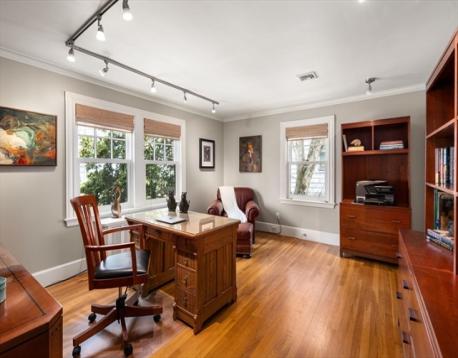 On a picturesque street in Newton Centre, this Tudor Revival blends timeless charm with modern amenities in a sought after neighborhood. The gabled front entrance reveals a welcoming foyer, graceful staircase and views of the front-to-back living room with a manor-style fireplace and beamed ceiling. French doors lead to a bright office with built-ins and outdoor terrace. 3/4 wainscoting and leaded-glass windows frame the elegant dining room, perfect for entertaining. In the architect-designed kitchen find custom cabinets, high-end appliances, a dining area and an attached sunroom with views of the private backyard and patio. Follow the spacious 2nd floor landing to a tranquil primary suite with modern bath and walk-in closets plus 2 more bedrooms and updated bath. Versatile skylit 3rd floor bedroom suite with full bath and walk-in-closet. The LL family room has custom built-ins, sound system plus a bath and mudroom. Mason-Rice district near City Hall, Library, Bulloughs Pond and more!