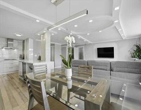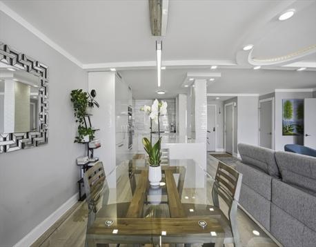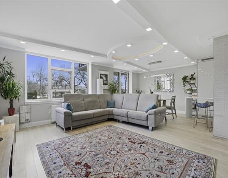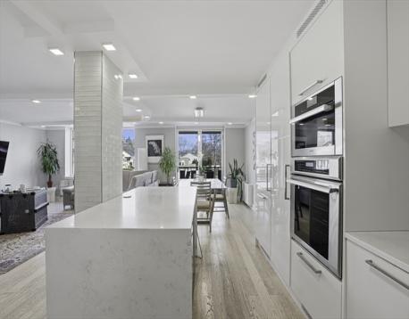 Fully gut-renovated 1BR/1.5BA (in 2016) at prestigious Imperial Towers, Chestnut Hill. Reimagined floor to ceiling, no expense spared. Sun-filled open living area with signature oval tray ceiling, engineered hardwood floors, and insulated windows and balcony door installed in 2019. The showstopping Norwegian handcrafted kitchen offers high-gloss cabinetry, waterfall stone island, integrated Miele wine cooler and charging station, paneled refrigerator and dishwasher, Thermador gas cooktop, Miele combi steam oven, brand-new never-used Thermador oven, reverse osmosis filtration. Spa-like full bath with double vanity, heated floor, glass-enclosed Grohe shower, and floor-to-ceiling stone tile. Norwegian custom walk-in closet with full-height cabinetry and built-in drawers. Bedroom features remote-controlled blackout shades and California custom sconces. Custom Wolfers Lighting throughout. Private balcony and luxury details at every turn.