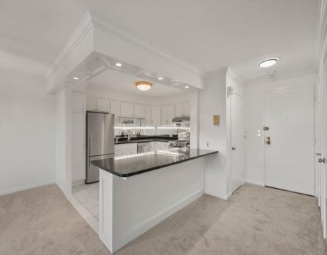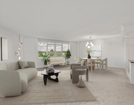 Beautifully designed 1-bedroom plus den residence on the 9th floor, offering sweeping views and abundant natural light throughout. The open-concept kitchen, living, and dining areas create a seamless flow, ideal for both everyday living and entertaining. The versatile den can easily function as a home office, family room, or guest space. A spacious primary suite features a walk-in closet and en-suite bath for comfort and privacy. Enjoy summer days by the pool and take advantage of the building’s exceptional amenities: a welcoming lounge for gatherings, fitness center, sauna, library, and tastefully appointed common areas. This full-service, elevator building also offers 24-hour concierge, on-site manager, guest parking, and additional storage. The unit includes one garage and one outdoor parking space. Perfectly located with easy access to Chestnut Hill’s premier shopping and dining destinations, combining luxury, convenience, and lifestyle.